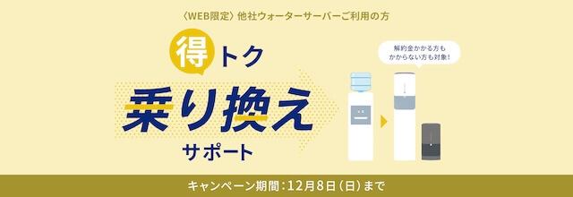 乗り換えキャッシュバックキャンペーンを行っている他社ウォーターサーバーをご紹介します。