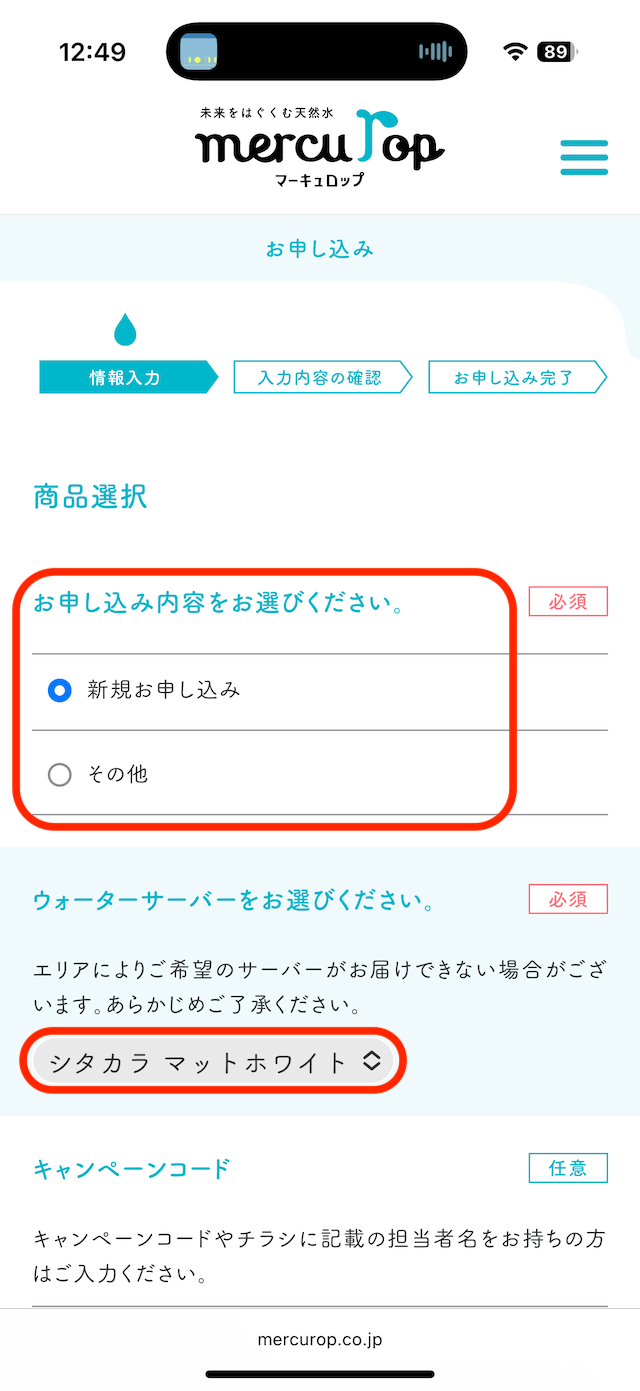 Webからの手続きは、公式サイトの申し込み欄から、以下の通りに進めていきます。